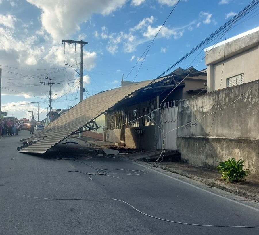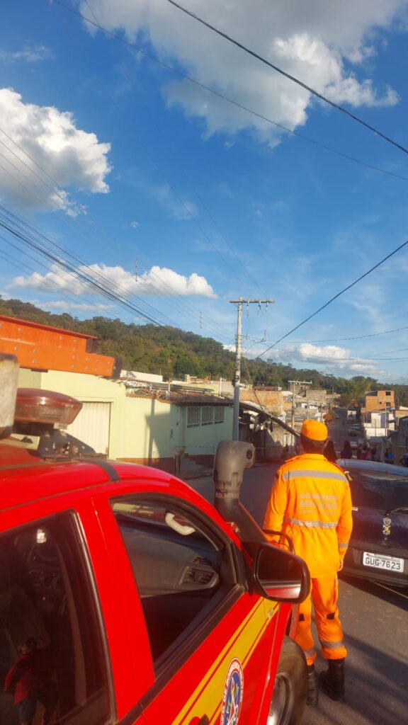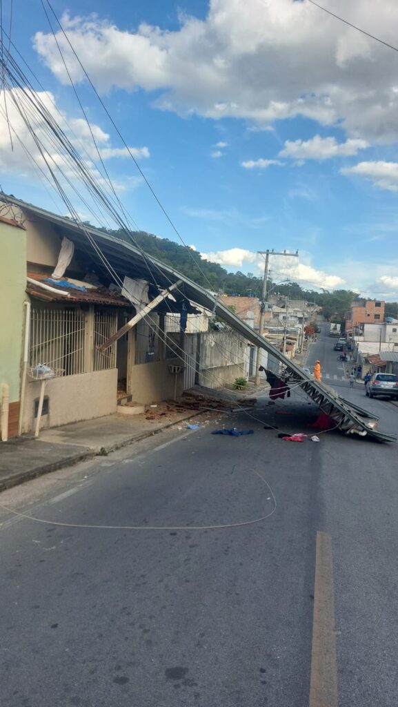O desabamento de uma cobertura metálica de uma residência atingiu a fiação elétrica de um poste, afetando o abastecimento de energia na região do bairro Morada Nova, em Itaúna, na tarde desta quinta-feira (19) de feriado. O colapso, segundo o Corpo de Bombeiros, ocorreu sem causa aparente. Não houve vítimas. A Cemig realizou o desligamento da rede e o imóvel passará por uma vistoria dos bombeiros para avaliação de possíveis danos estruturais e risco de novos desabamentos.