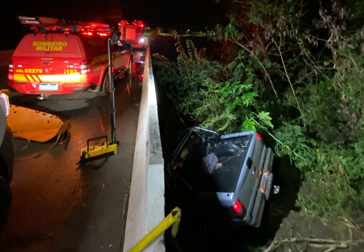 A ocorrência foi registrada às 20h17. Conforme a PM, um solicitante informou que visualizou uma picape Ford Ranger caída ao lado da ponte sentido Fazendinha, acionando resgate e demais moradores próximos ao local na tentativa de socorro.