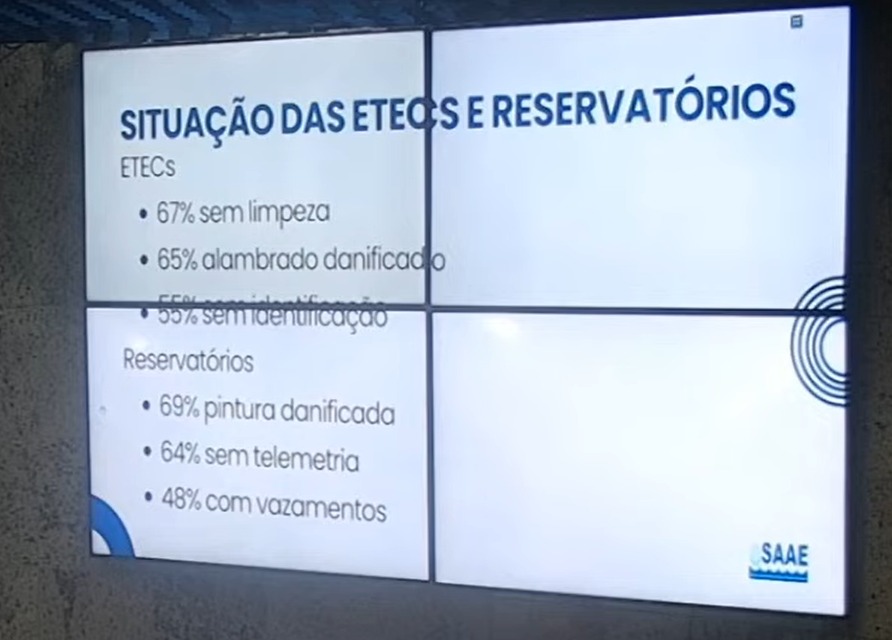 RELATÓRIO Durante a reunião, o diretor do SAAE também apresentou um relatório com a situação das ETECs e demais estruturas do SAAE – como a Estação de Tratamento de Esgoto (ETE), inaugurada pelo ex-prefeito Neider Moreira (PSD) no Distrito Industrial.