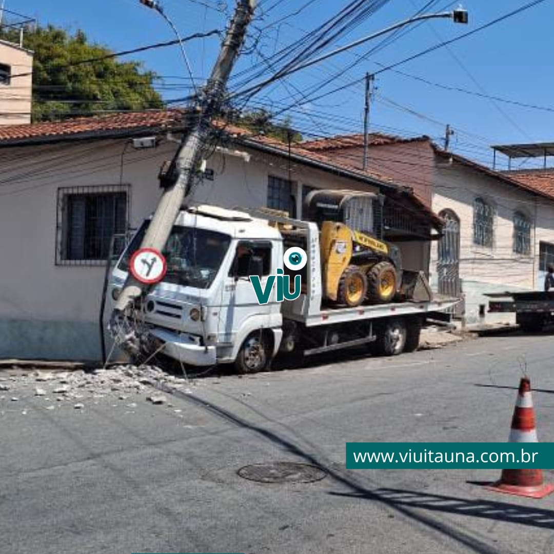 Um caminhão prancha colidiu contra um poste de energia elétrica na manhã desta segunda-feira (8), na esquina das ruas Antônio Martins e Caetés, no bairro Piedade, em Itaúna. Na batida, o portão de uma residência foi atingido. O acidente também provocou a interrupção no fornecimento de energia para parte do bairro.