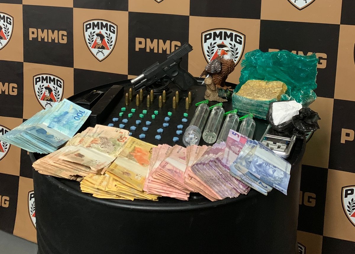 Durante a operação foram apreendidos uma pistola calibre 9mm com numeração raspada, um carregador alongado para pistola 9mm com capacidade para 30 munições, comprimidos de substância semelhante a ecstasy, tablete de cocaína, barra de crack, frascos de lança-perfume, munições calibre 9mm, balança de precisão, grande quantidade em dinheiro e um aparelho celular.