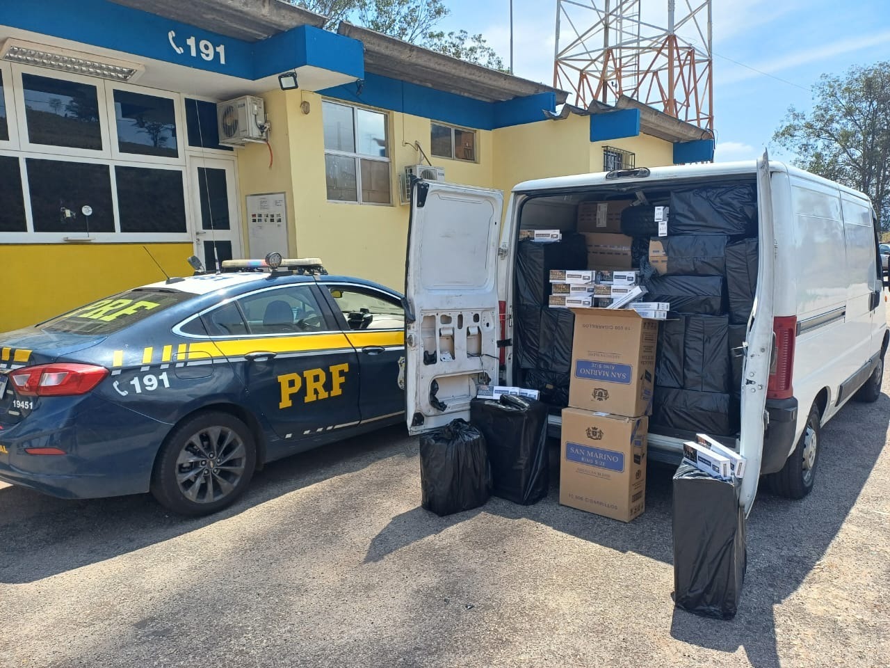 A Polícia Rodoviária Federal (PRF) apreendeu na manhã desta sexta-feira (19) cerca 50 mil maços de cigarros contrabandeados durante fiscalização no quilômetro 527 da rodovia Fernão Dias, em Itatiaiuçu. A carga, de origem paraguaia, era transportada em um furgão. Durante fiscalização, o motorista admitiu espontaneamente que transportava cigarros. Além do condutor, um passageiro também estava no veículo. Ambos foram presos em flagrante por contrabando e encaminhados à Polícia Federal em Divinópolis.