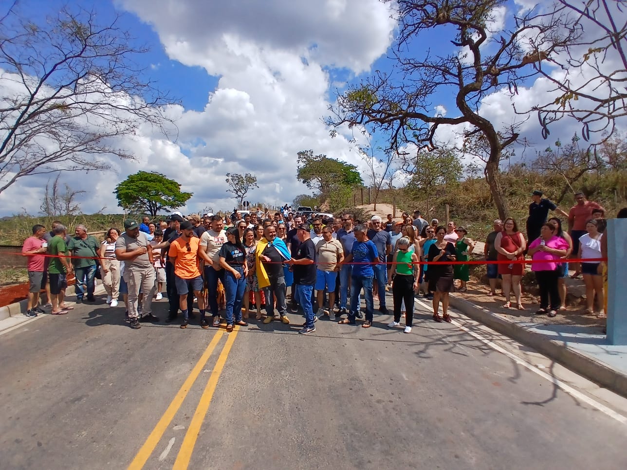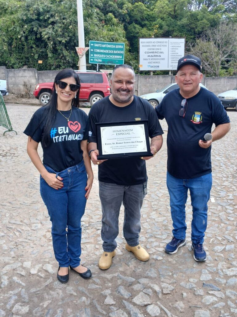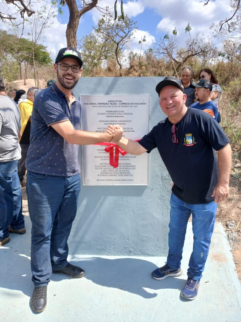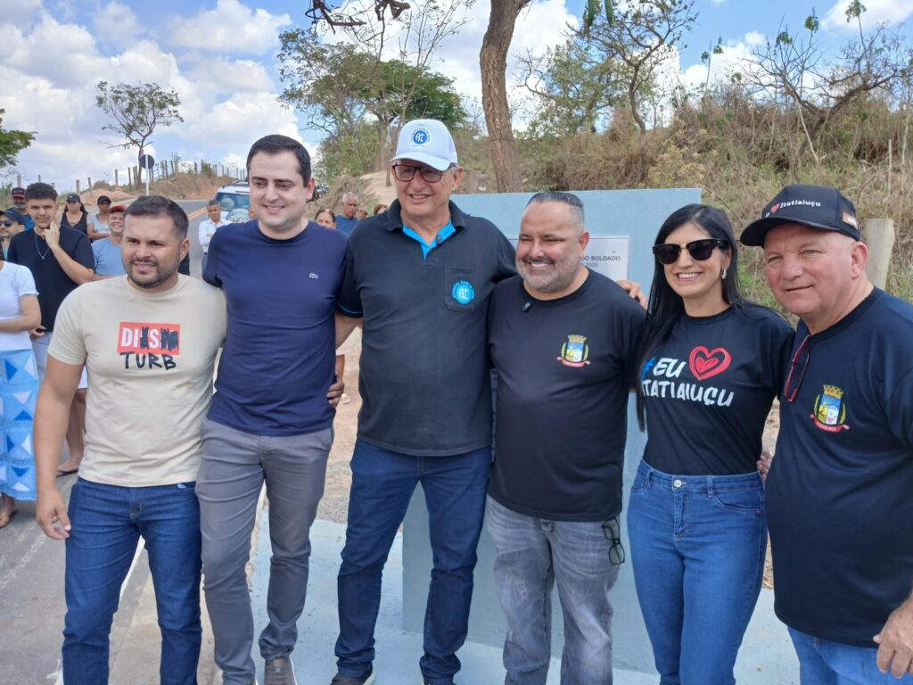 Com a presença de vereadores de Itaúna e a bandeira do município carregada nas costas, o prefeito de Itatiaiuçu, Romer Soares (Cidadania), inaugurou neste sábado (20) a pavimentação asfáltica do trecho de Itatiaiuçu da estrada de acesso ao Córrego do Soldado, comunidade na zona rural de Itaúna. A obra, de cerca de 3,6 quilômetros, foi concluída no fim de julho. Ao discursar, Romer disse que Itaúna e Itatiaiuçu são cidades coirmãs e que “um tem que ajudar o outro porque fica bom para os dois lados”, “sem ver a quem”. O prefeito de Itatiaiuçu ressaltou a qualidade da obra, com drenagem profunda, e contou que desde que descobriu que o trecho asfaltado pertencia à Itatiaiuçu, o ex-vereador Silvano Gomes Pinheiro, o Silvano do Córrego do Soldado, “virou o carrapato na minha vida”.