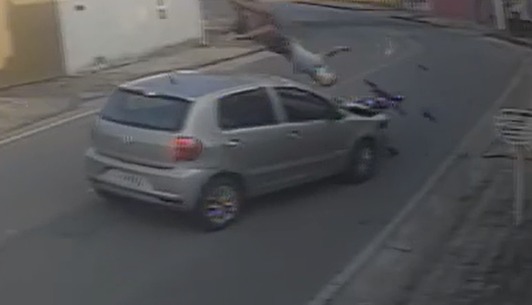 Nas imagens do acidente desta segunda-feira, o motociclista tenta desviar do veículo ao perceber a aproximação, mas não consegue evitar o choque. Com o impacto, é arremessado sobre o carro e cai ao solo. O SAMU informou que ele foi atendido pela Unidade de Suporte Básico (USB) de Itaúna e encaminhado ao Hospital Manoel Gonçalves.