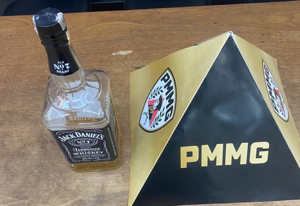 Com base em informações operacionais e levantamentos realizados, foi iniciado um rastreamento contínuo e ininterrupto, que levou à prisão e a apreensão de uma garrafa de whisky Jack Daniels, já quase vazia.