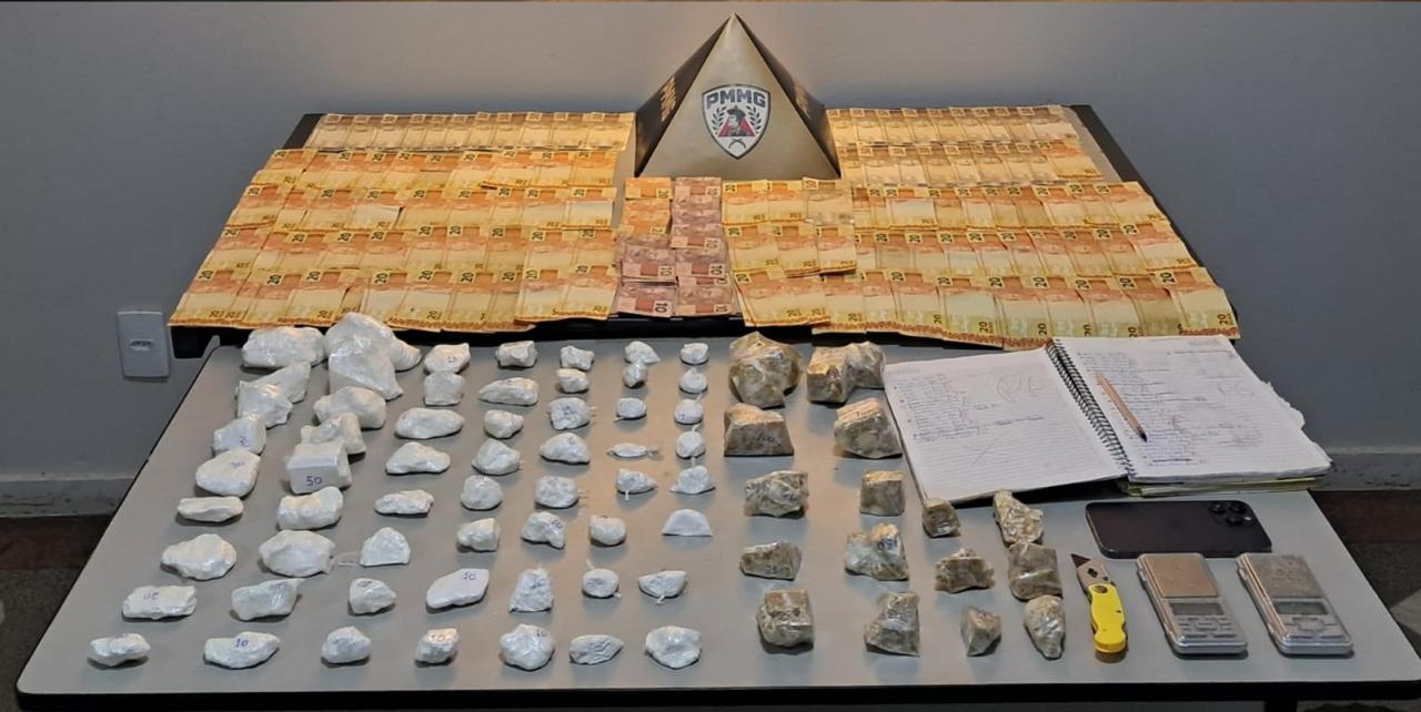 A PM adentrou no local e abordou o suspeito. Após buscas também foram localizadas em uma mochila em um dos quartos, 58 porções de cocaína, 15 pedras de crack grandes – todas em embalagens variadas e numeradas, uma balança de precisão, um estilete com lâmina e R$ 4.120 em notas diversas.