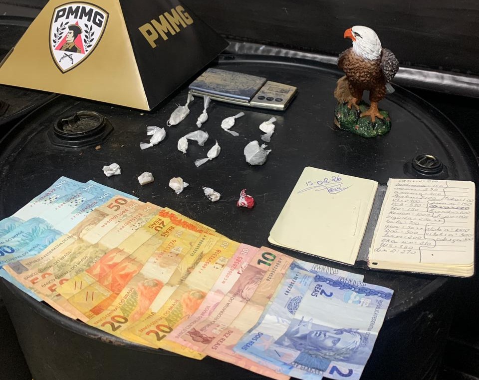 Foram apreendidos uma barra e quatro tabletes de maconha, porções fracionadas da mesma substância, sete papelotes de cocaína, cinco pedras de crack, uma balança de precisão, materiais para dolagem, caderno com anotações do tráfico, aparelho celular e R$ 586 em dinheiro.