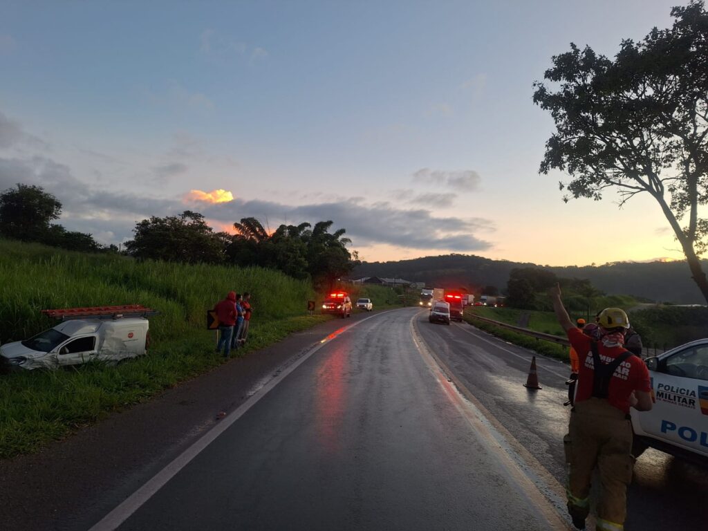 A PMRv compareceu no km 91 da MG-050, onde foi apurado ocorrência de colisão lateral com uma vítima de ferimentos leves envolvendo duas Fiat Fiorino, por volta de 17h.